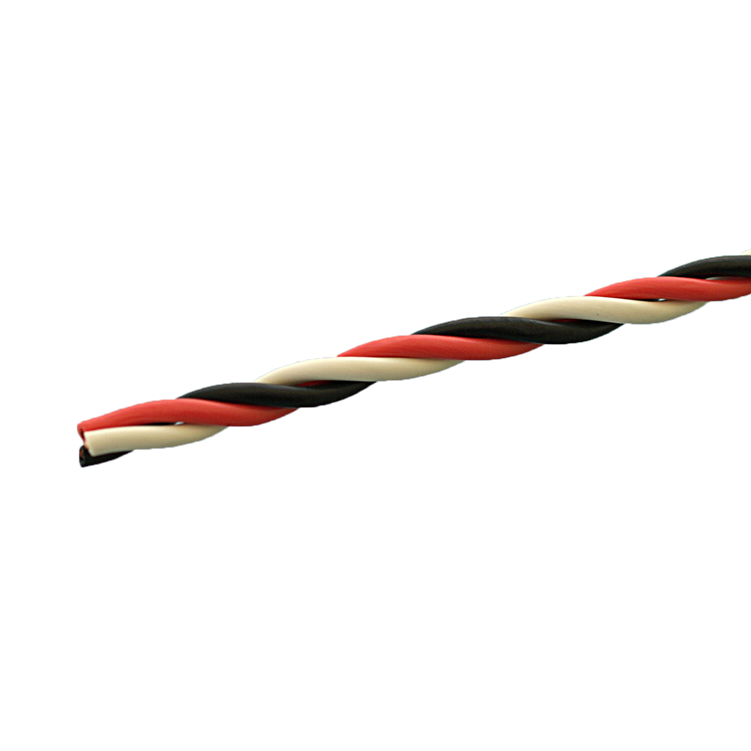 Verdrillte, hochflexible Servolitze mit Futaba Farbkodierung schwarz/rot/weiss.