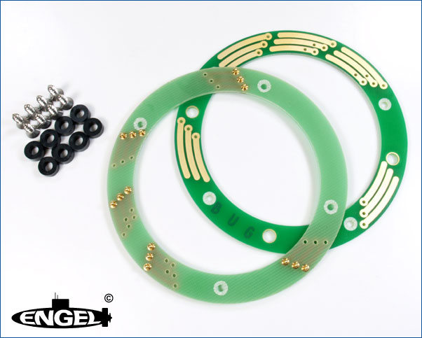 Energiekupplung bestehend aus 2 ringförmigen Platinen mit chemisch vergoldeten Leiterbahnen.