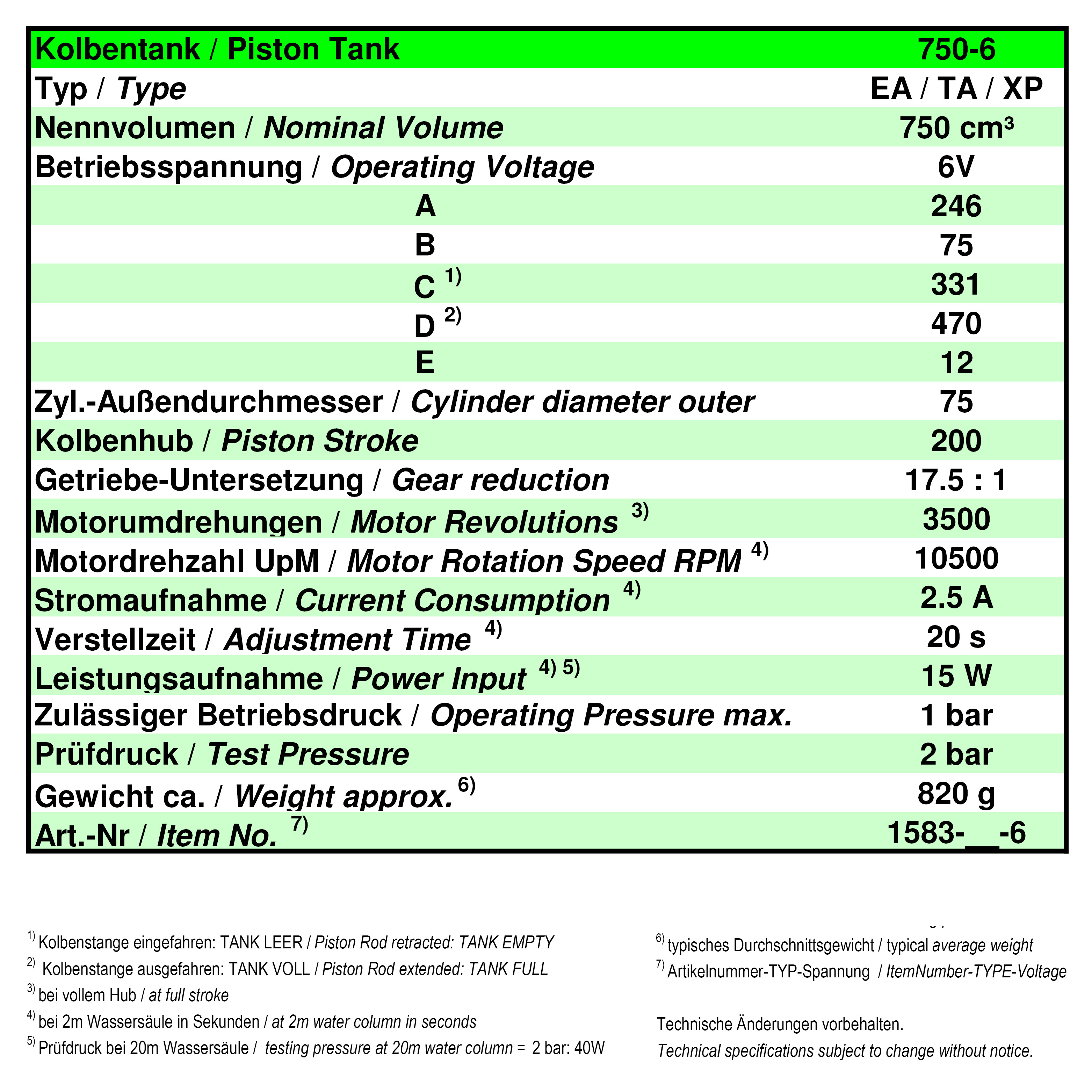 Kolbentank Typ EA 750-6V mit automatischer Endlagenabschaltung und Motorbaugröße 540.