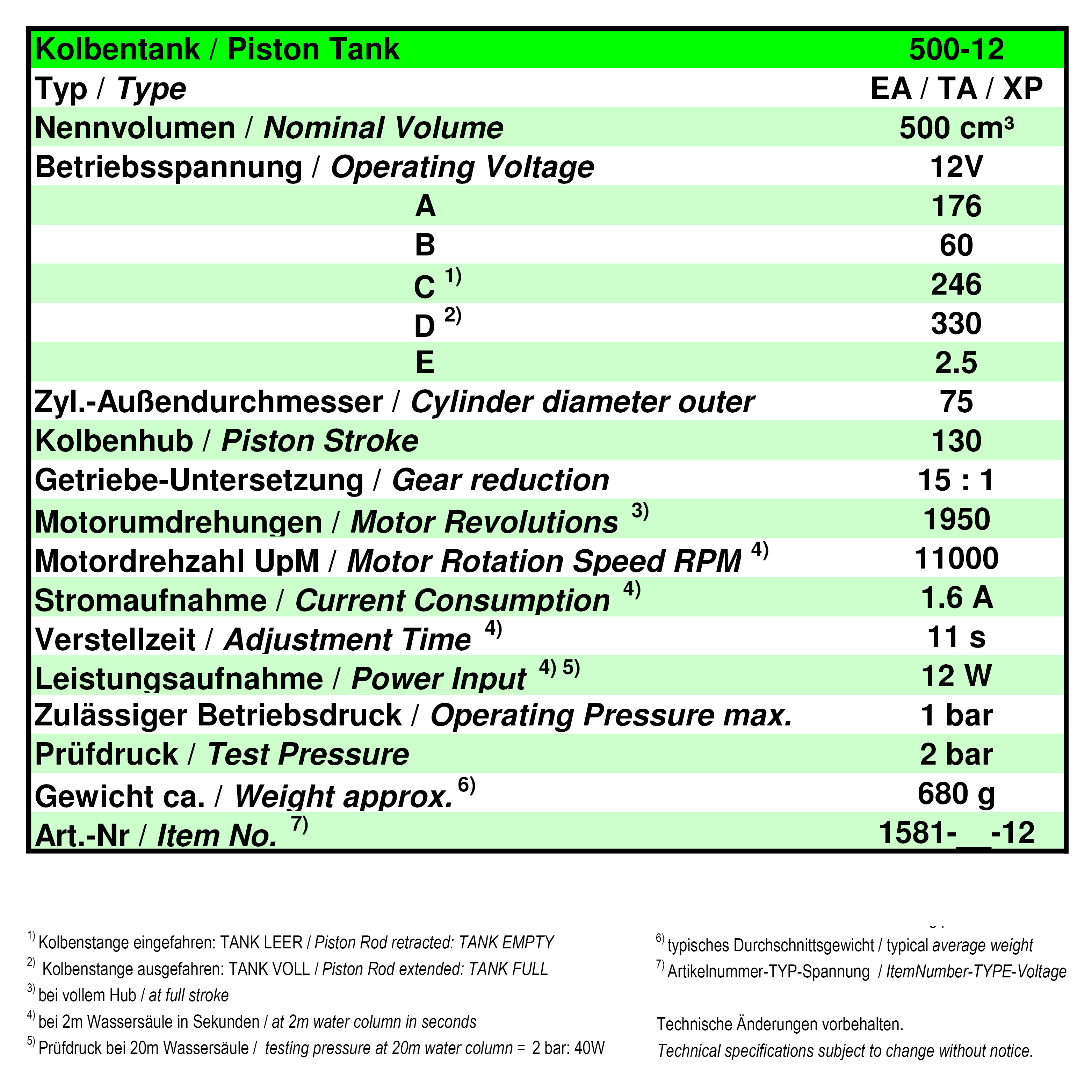 Kolbentank Typ EA 500-12V mit automatischer Endlagenabschaltung und Trimmungsautomatik sowie kleinerer Motorbaugröße 380.