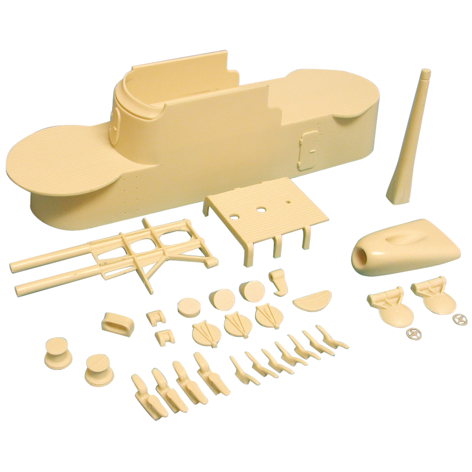 • umfangreicher Beschlagsatz aus Resin vorgefertigt, einschl. Luken, Klüsen, Klampen etc.