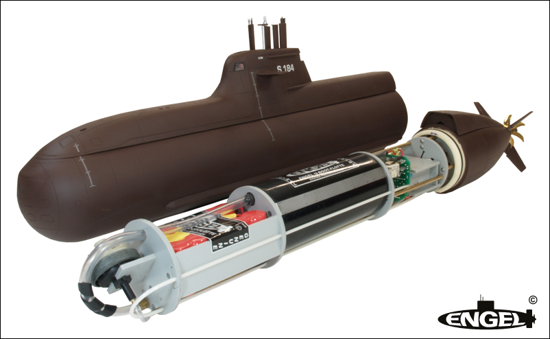 Diese neue Bausatzausführung enthält die Kolbentanksteuerung CTS mit Hallsensor für proportionale Steuerung - schwimmt und taucht wie das Original.