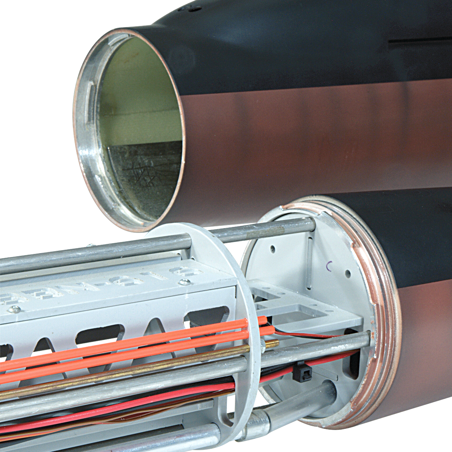 Der Rumpf des Modells hat eine Radialtrennung mit Bajonett-Verschluss.