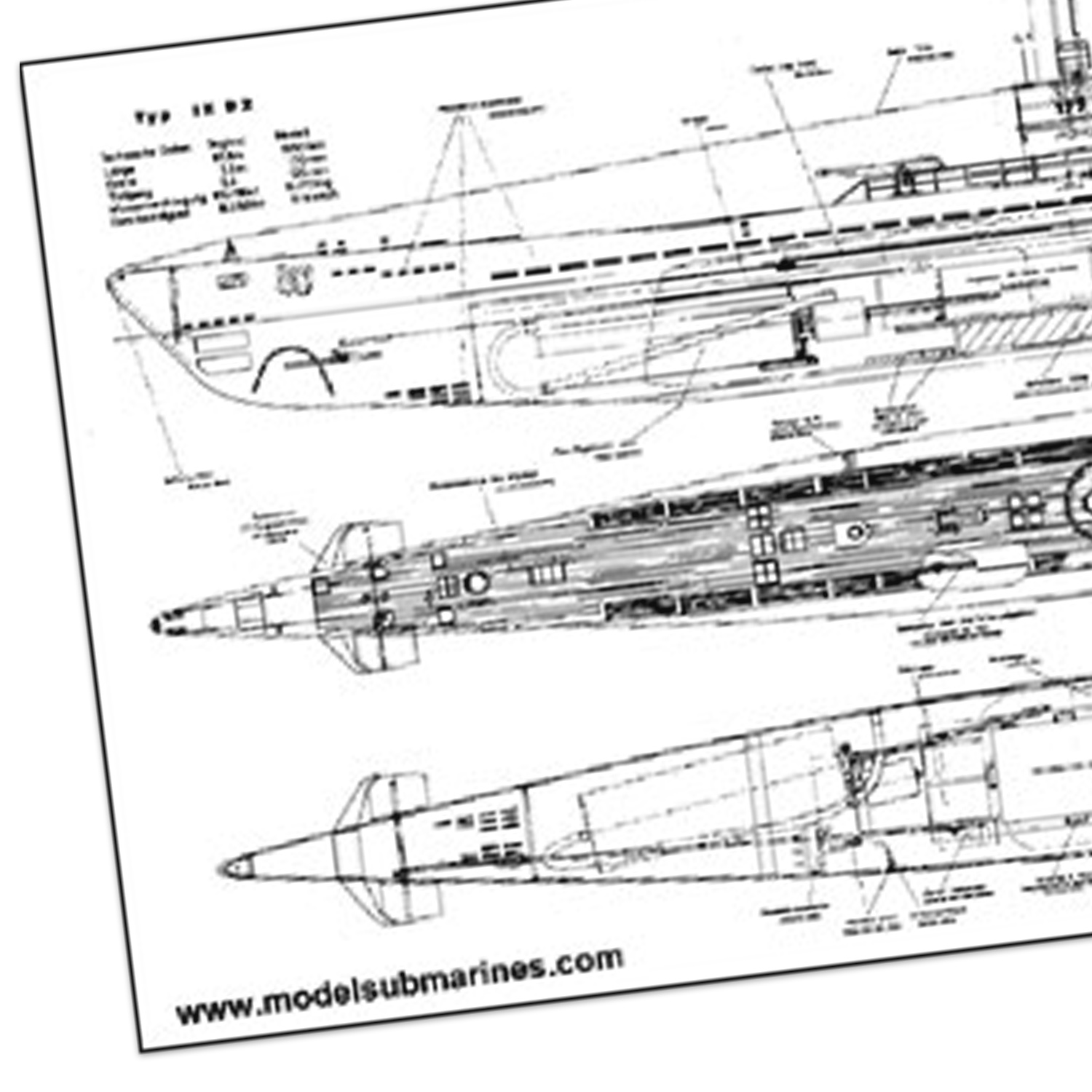 Dieser Satz enthält die kompletten Bauunterlagen des U-Bootmodells U177 Typ IX D2 einschl. Bauplan 1:1 mit Bauanleitung und weiterer Detailzeichnungen.