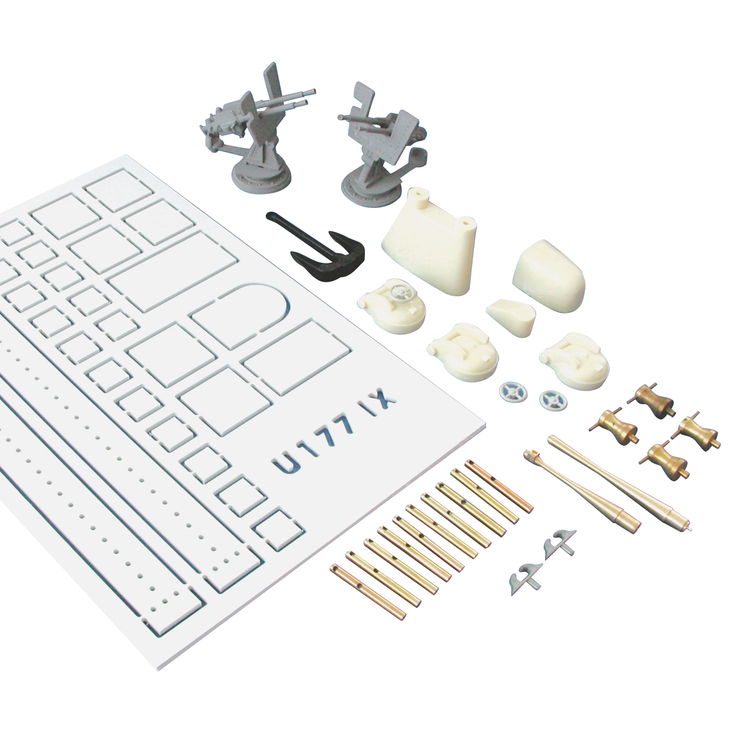 • umfangreicher Beschlagsatz aus Resin vorgefertigt, einschl. Luken, Klüsen, Klampen etc.